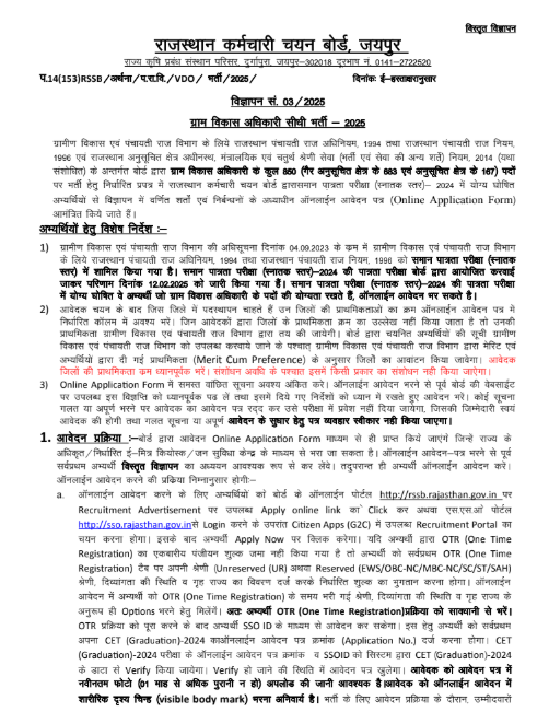 Rajasthan VDO Bharti 2025 Official Notification विज्ञापन देख सकते है |